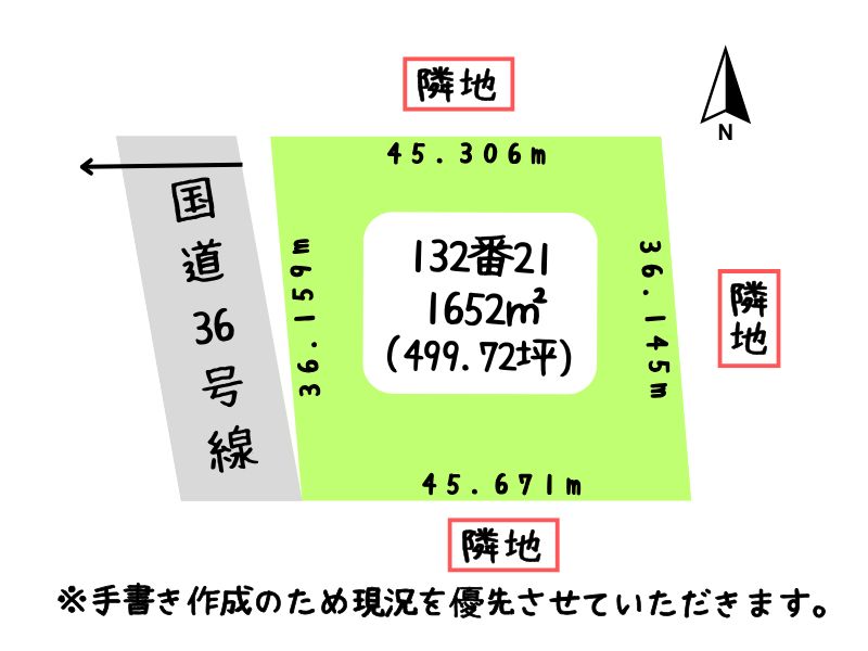 【植苗】36号線沿い🚙499.72坪の広い敷地✨約500坪