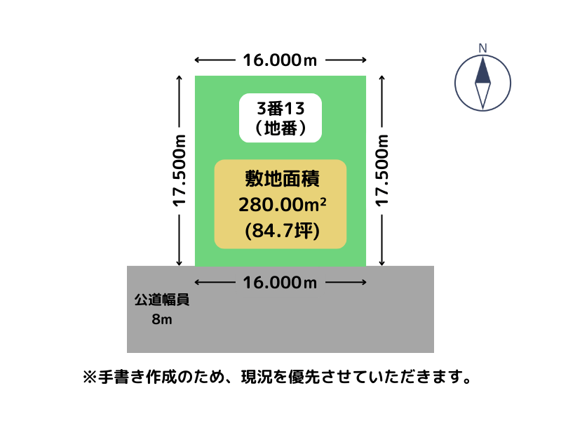 接地状況: 南側 幅8mの公道に16.000m接道